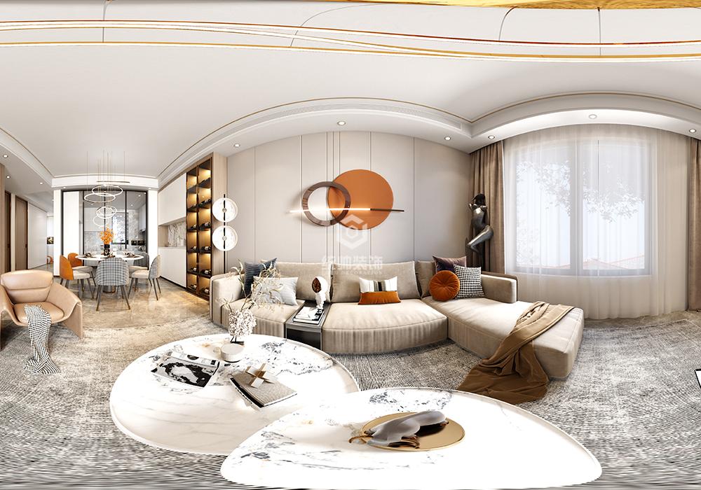 这套设计进门以玄关方式进入,墙面采用木饰面板,简单大气。客厅用金属元素点缀空间。“已达 未满”的轻奢,讲究一种分寸感,代表着一种不被世俗裹挟的生活态度。是低调,是内敛,是轻盈,是隐于嘈杂尘世的桃源;是奢华,是精致,是格调,是对于质感和品味的追求。