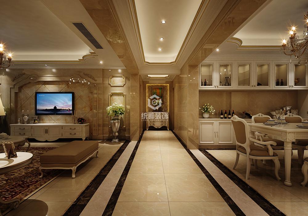 本案为四房二厅二卫一厨的多层住宅,面积为196m2. 环境优美,以三口之家为依据进行设计,突出温馨且不失时尚大气之感。本案设计师以奢华富丽的设计风格为主调全面考虑,在总体布局方面,大面积满足三口之家生活上的需求,主要装修材料为仿大理石为装饰饰面,以天然大理石的线条装饰玄关及各种景点,创造一个温馨,健康的现代家庭环境.环境室内设计区别于简单的装饰设计就在于环境艺术设计是从全局出发,而不仅仅着眼某一点或某一个墙面的装饰.利求达到统一中带有变化,和谐中产生对比的要求。 首先在功能方面,要充分满足业主的生活要求,客厅是聚友娱乐中心,影视墙采用墙面大理石雕花搭配,中间墙面采用仿大理石饰面,既大方又有气派,沙发背景采为石线条及墙布作为特别装饰,附以大理墙面加以点缀。形成具备实用,时尚,美观,环保,舒适居住雅居。