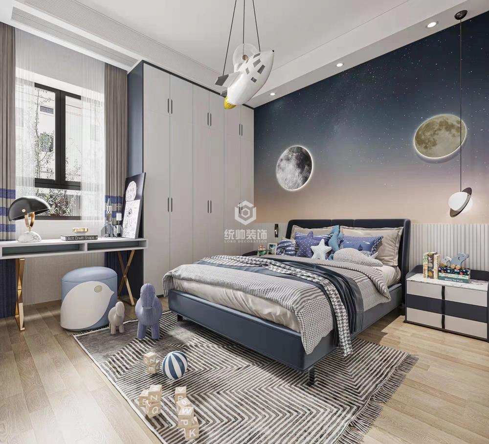 本案为顶楼带复式,整体功能区间调整比较大,客厅背景墙由南面调至北面,释放原电视背景墙面,楼梯和电视背景连接,整体美观大方。厨房做中西厨设计,增加操作空间的同时,方便家人之间的交流互动,一楼预留长辈房和客房,二楼作为主要的家居卧室空间,主卧和小孩房相邻,方便家人照顾。