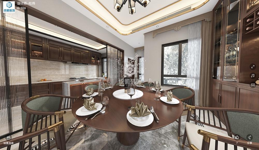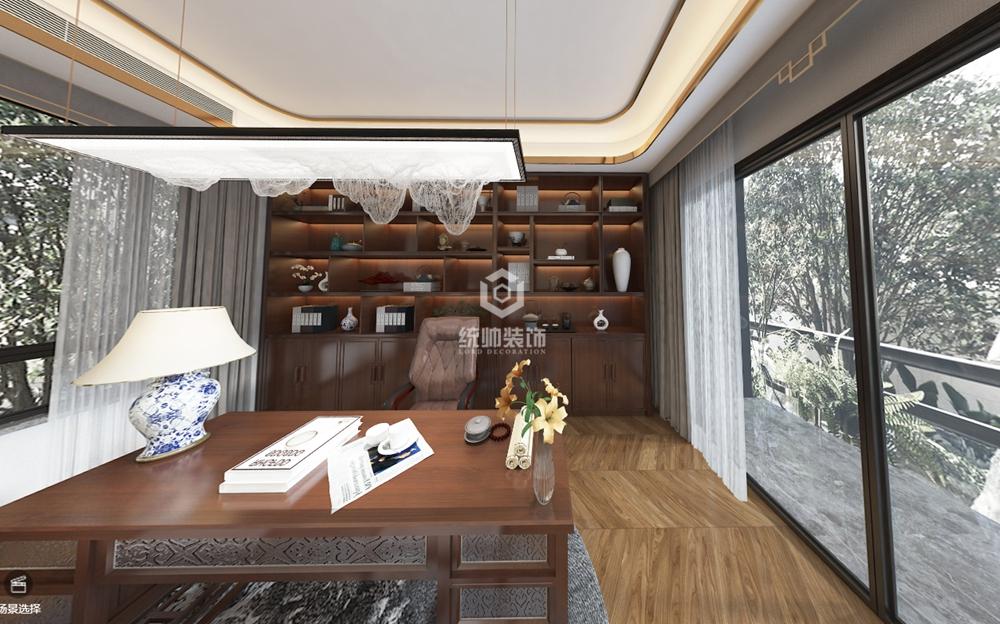 如意造型吊顶配合祥云造型的灯具,让入户的挑空更加大气,“吉祥如意”的寓意也是对业主及宾朋深深的祝福。原始结构挑空处增加的悬浮书房,使得空间更加合理利用。玻璃幕墙的运用使得空间更加通透,大气。