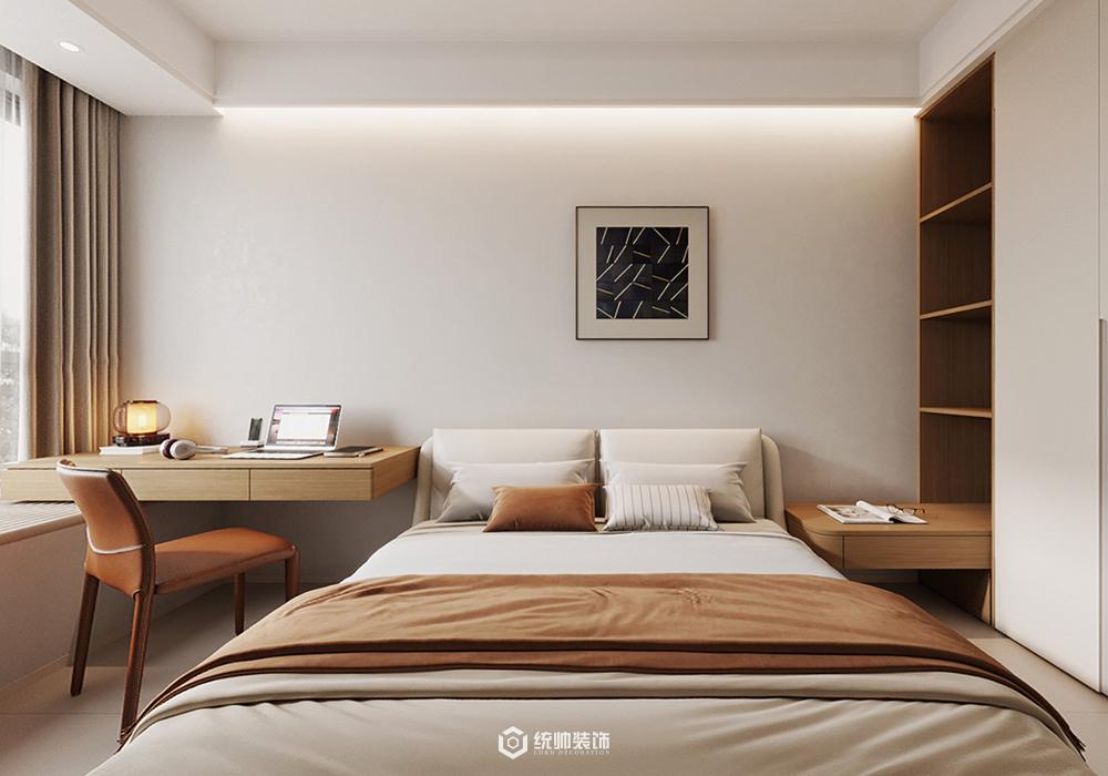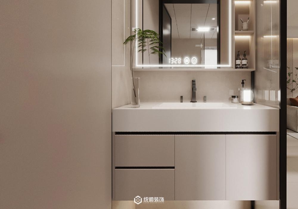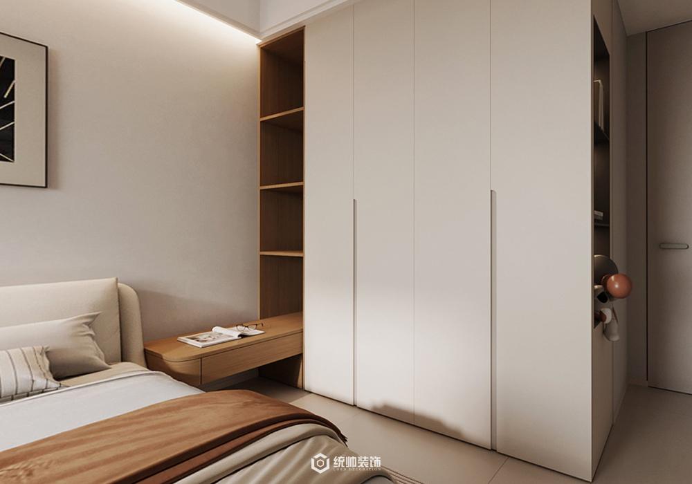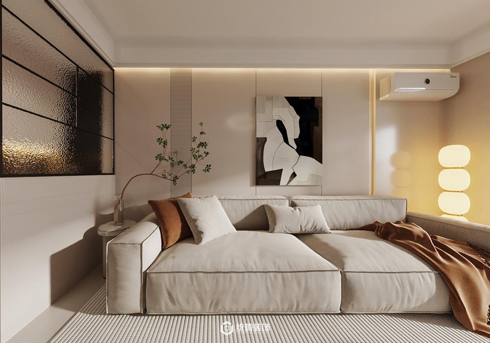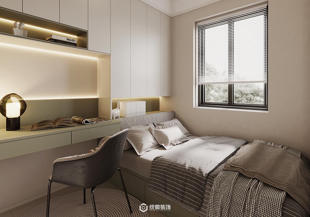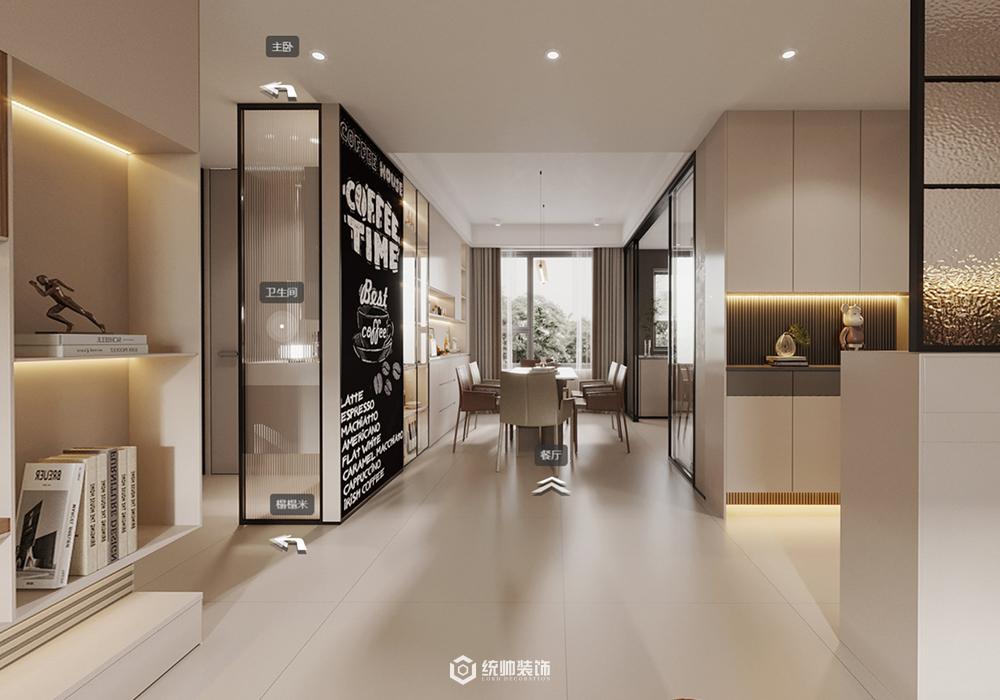 业主夫妻是东北人所以整体风格偏向大方的现代简约,女业主比较喜欢奶油风,所以整体瓷砖选用了当下流行的素色砖,配上奶杏色的墙面整体温馨大方。本户型本来是一个小三房,中间的小房间特别小床都放不下,考虑后期孩子长大需要一个独立的房间,所以像卫生间借了空间正好放得下一个床一个书桌以及收纳柜,配合上干事分离的卫生间大大缓释放卫浴空间的使用。墙体结构本身为比较多的非承重结构,所以拆除后做了个玄关背景。以及小孩子的涂鸦墙面。
