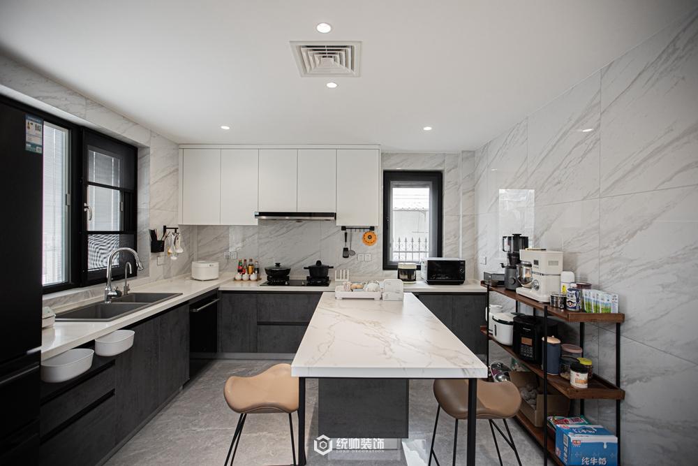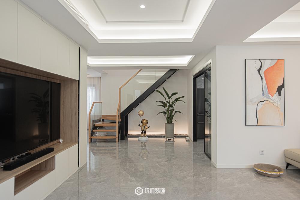 本案位于嘉定马陆葡萄主题公园附近的新农村建筑,清静自然具有浓厚的地域特色,为了不与建筑原来风格冲突,和业主一致达成了现代加中式元素的混搭来平衡整体格局。本案做出的最大结构调整是一楼到二楼的楼梯方位,改动之后最大化视觉空间和厨房的功能改造。客厅的榻榻米设计突显了大玻璃窗引景入室的功能,在此日间可品茗赏院景,夜晚则对邀清风明月。沙发后面的背景墙正好呼应此景。居于自然风光之中,把身心留给自己;寻得一处田居,把心灵的自在留给空间,符合业主无所拘束的畅然,归于自然热爱生活随性洒脱的性格。