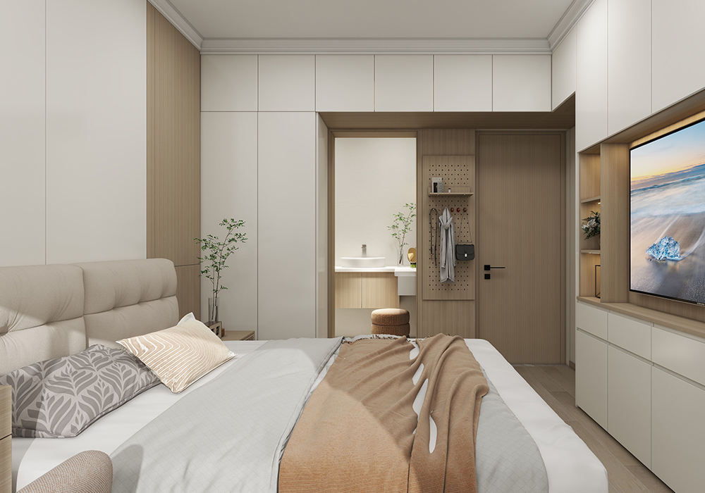 这是个朝南的大三房户型,虽然是一楼,但是采光很好,有个朝南的院子,解决一切洗晒的功能,还能有富余的休闲空间。格局上不需要太大的变动,主要是把功能区域的合理性重新做一个调整。比如增加餐边柜区域,需要如何衔接餐桌且达到不占用过多的活动空间。由于承重结构较多,又是老房子,所以想让主卧卫生间能更加舒适,也是想了很多多功能的便捷设计。业主有一个重要的诉求,就是觉得入户门厅这一块由于两边都是墙体,所以显得特别暗,解决这个问题,我们现场测了承重结构,判断没有问题时,把厨房的门洞扩大,把光引进来。