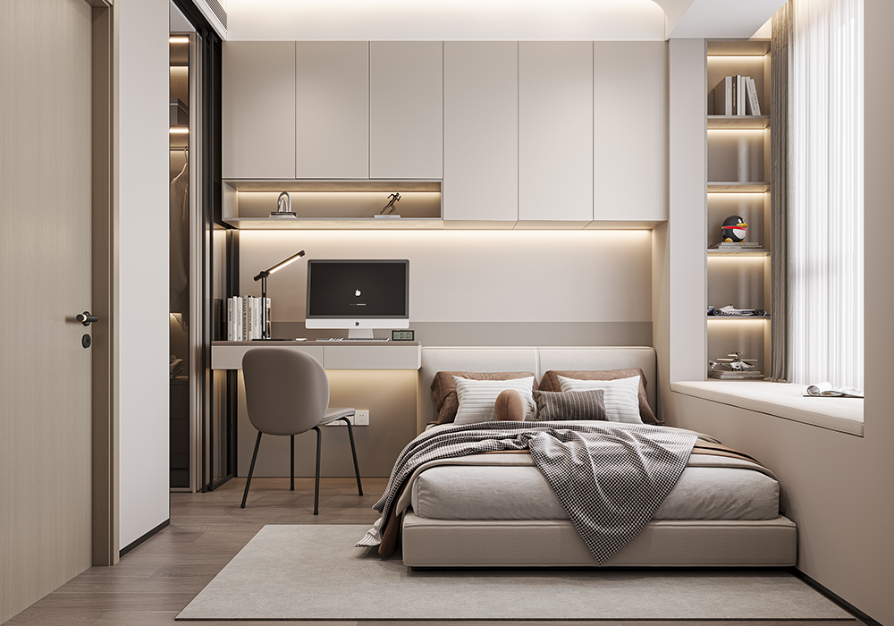 本方案采用简约明朗的线条,将空间进行了合理的分隔。以简洁明快为主要特色,重视室内使用功能,强调室内布置应按功能区分的原则进行,家具布置与空间密切配合。 不仅节约空间和材料,而且使室内布置清爽、有序,富有时代感和整体美,体现了现代派所追求的“少就是多的简约化设计。简约并不是缺乏设计要素,它是一种更高层次的创作境界。在室内设计方面,不是要放弃原有建筑空间的规矩和朴实,去对建筑载体进行任意装饰。而是在设计上更加强调功能,强调结构和形式的完整,更追求材料、技术、空间的表现深度与精确。用简约的手法进行室内创造,它更需要设计师具有较高的设计素养与实践经验。需要设计师深 入生活、反复思考、仔细推敲、精心提炼,运用最少的设计语言,表达出最深的设计内涵。删繁就简,去伪存真,以色彩的高度凝练和造型的极度简洁,在满足功能需要的前提下,将空间、人及物进行合理精致的组合,用最洗练的笔触,描绘出最丰富动人的空间效果,这是设计艺术的最高境界。