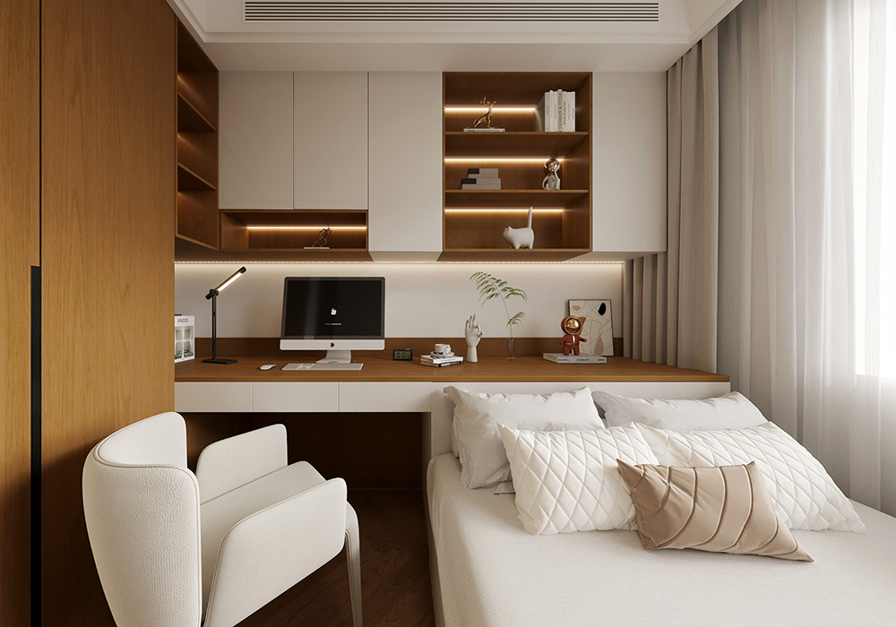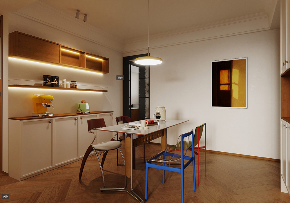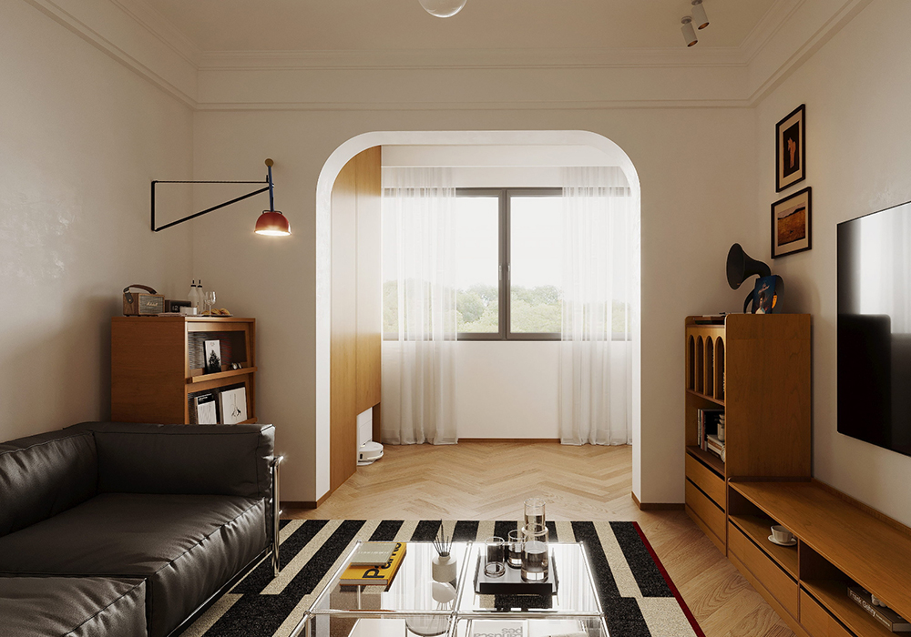 强调一种复古典雅、松弛惬意的格调,通过软装和灯光来烘托室内空间的氛围感和温馨感。根据不同业主的喜好,也逐渐和其他风格有了交叉,比如奶油中古风、法式中古风、原木中古风等。因要保留原本带的地暖,为不破坏地暖的排线,我们对于墙体没有做出太大的改变,保持原有户型。关于风格这个房间内就带了点法式线条 灯盘这些,包括地板 家具的颜色 包括灯光都需要一点点调配 这样空间才会协调。