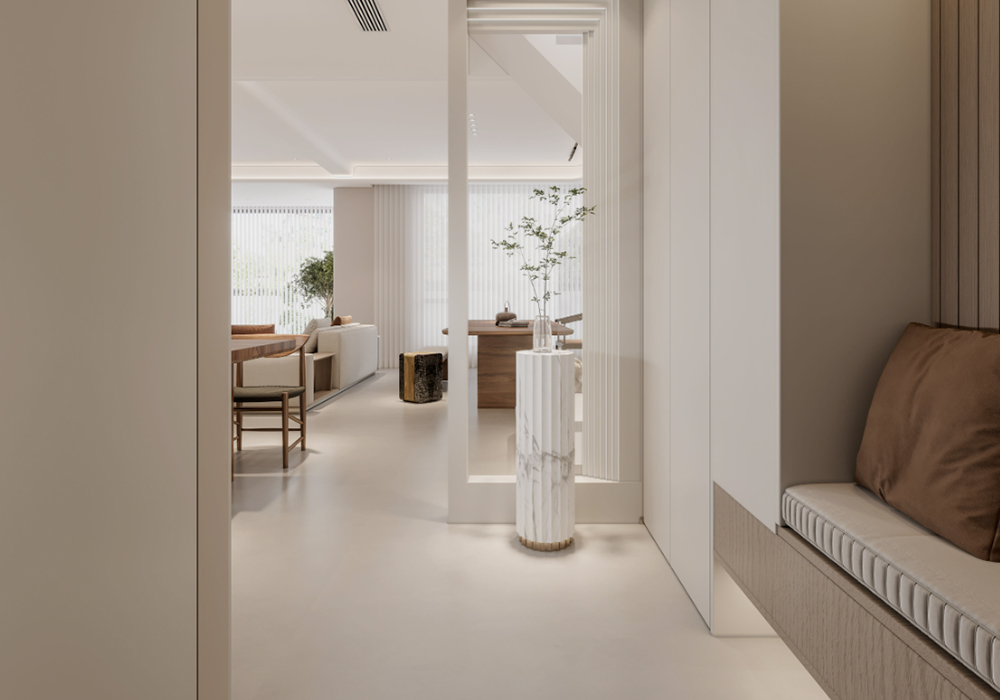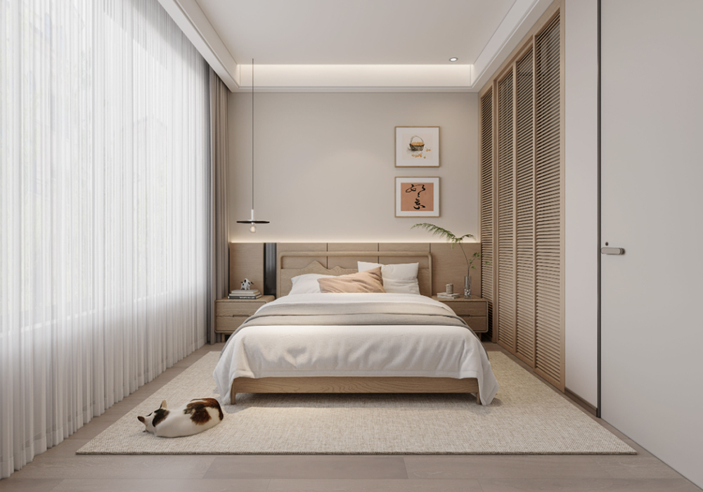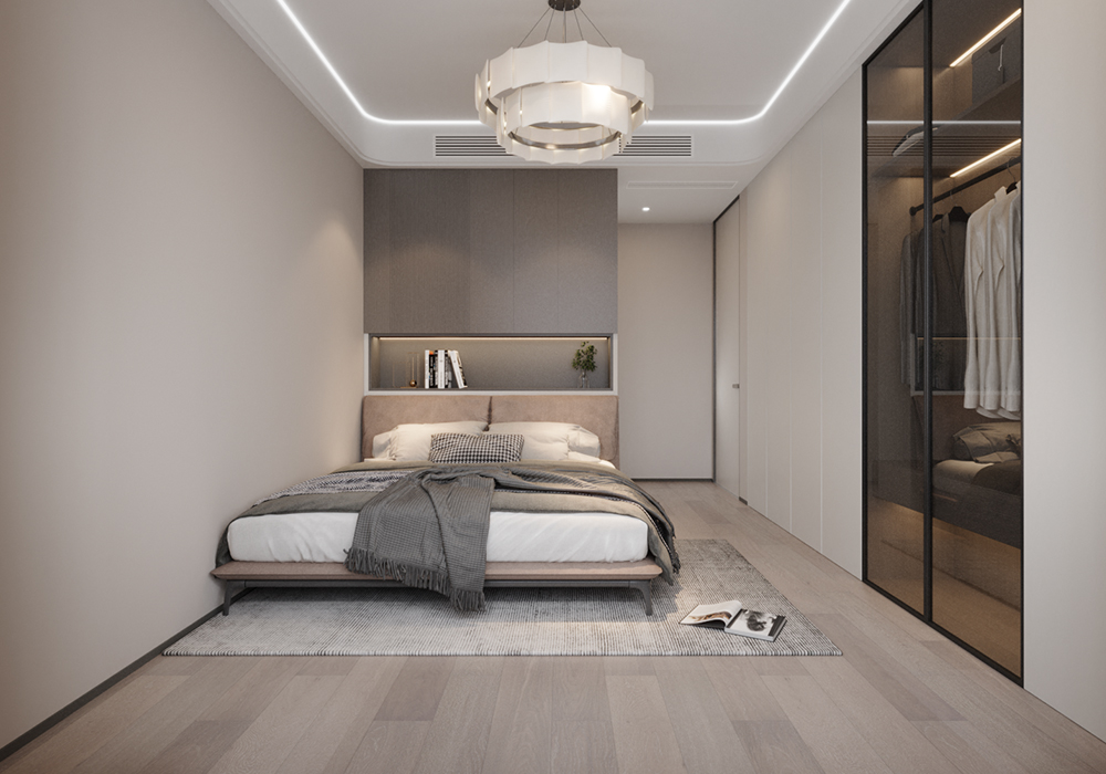 整体空间采用开放式布局,最大限度地减少了墙体的阻隔,使各个功能区域相互贯通,营造出流畅的动线。客厅、餐厅与厨房一体化设计,增强了家庭成员之间的互动与交流。宽敞的客厅为人们提供了舒适的休闲场所,大型落地窗引入充足的自然光线,让整个空间更加明亮通透。 卧室采用简约的布局,注重睡眠的舒适性和私密性。合理规划的收纳空间,满足了日常衣物和物品的存放需求。卫生间干湿分离,提高了使用的便利性和卫生性。