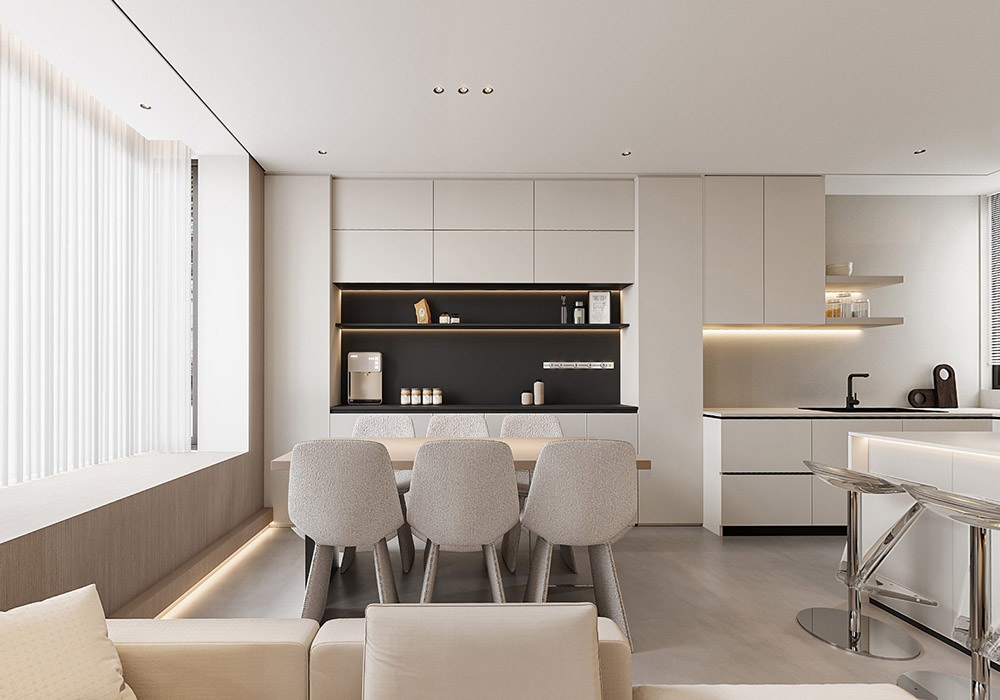 选择浅色系的墙面和地板,搭配简约的沙发、茶几和电视柜,营造出宽敞明亮的感觉。可以添加一些绿植或花卉,增加自然气息。放置一张简约的木质餐桌和几把舒适的餐椅,搭配一盏吊灯,打造温馨的用餐氛围。卧室:选择舒适的床垫和柔软的床上用品,墙面可以刷成淡蓝色或米色,营造出宁静的氛围。可以添加一些简约的装饰品,如壁画或照片墙。厨房:采用白色或灰色的橱柜,搭配黑色的电器和五金配件,简洁大方。可以添加一些绿植或花卉,增加自然气息。卫生间:选择白色或灰色的瓷砖,搭配简约的卫浴设备,营造出干净整洁的感觉。可以添加一些绿植或花卉,增加自然气息。