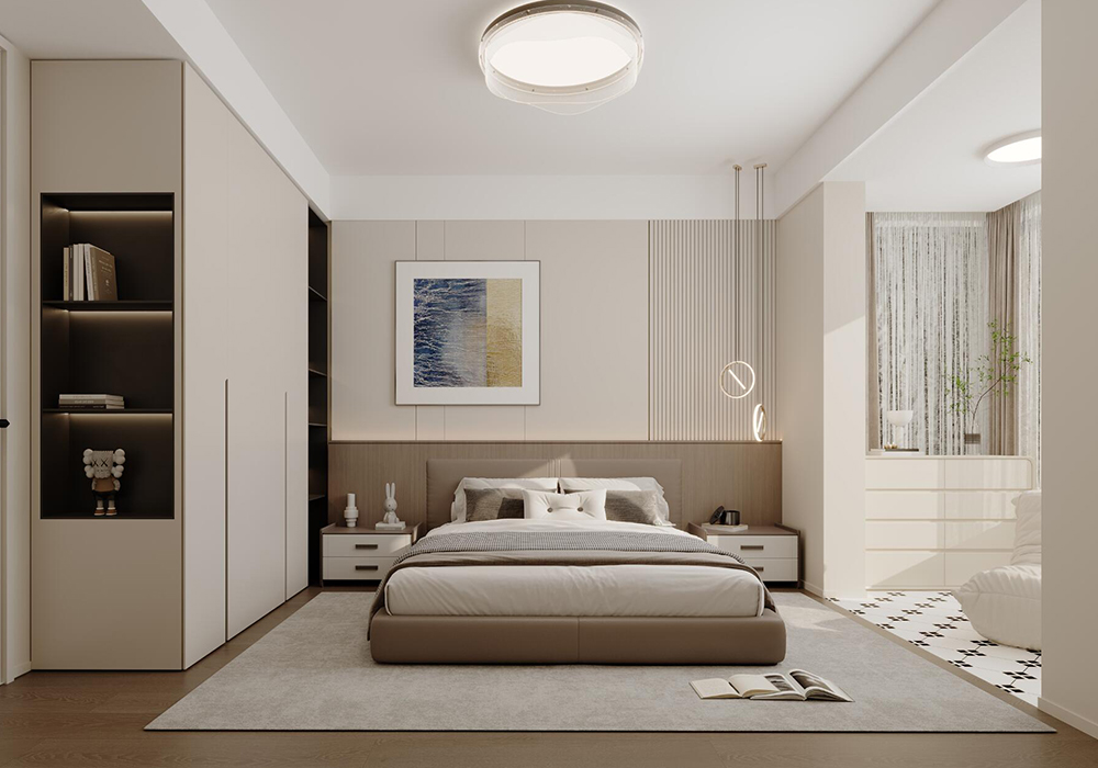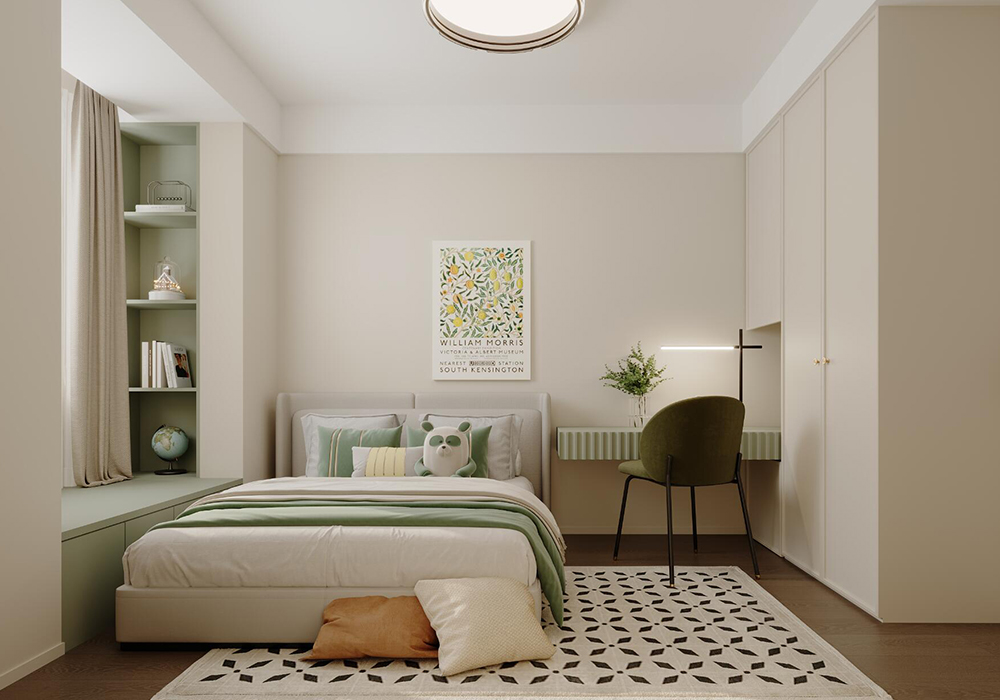 家庭人员构成:中年夫妻,中学学龄女儿,3只猫,1只狗狗客户设计需求:简约,温馨明亮,适合学习环境和手办,以及猫猫狗狗的生活空间。 业主家有上中学的女儿,有自己喜欢的手办需要展示和收藏,储物空间及展示柜需要合理规整。宠物成员较多,各方面细节也要考虑到它们的安全和舒适度。