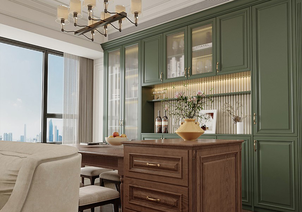 法式家居常用洗白处理与华丽配色,洗白手法传达法式乡村特有的内敛特质与风情,配色以白、金、深色的木色为主调。结构粗厚的木制家具,例如圆形的鼓型边桌,大肚斗柜,搭配抢眼的古典细节镶饰,呈现皇室贵族般的品味。 法式建筑十分推崇优雅、高贵和浪漫,它是一种基于对理想情景的考虑,追求建筑的诗意、诗境,力求在气质上给人深度的感染。风格则偏于庄重大方,整个建筑多采用对称造型,恢宏的气势,豪华舒适的居住空间,屋顶多采用孟莎式,坡度有转折,上部平缓,下部陡直。屋顶上多有精致的老虎窗,且或圆或尖,造型各异。外墙多用石材或仿石才装饰,细节处理上运用了法式廊柱、雕花、线条,制作工艺清细考究。法式建筑呈现出浪漫典雅风格。