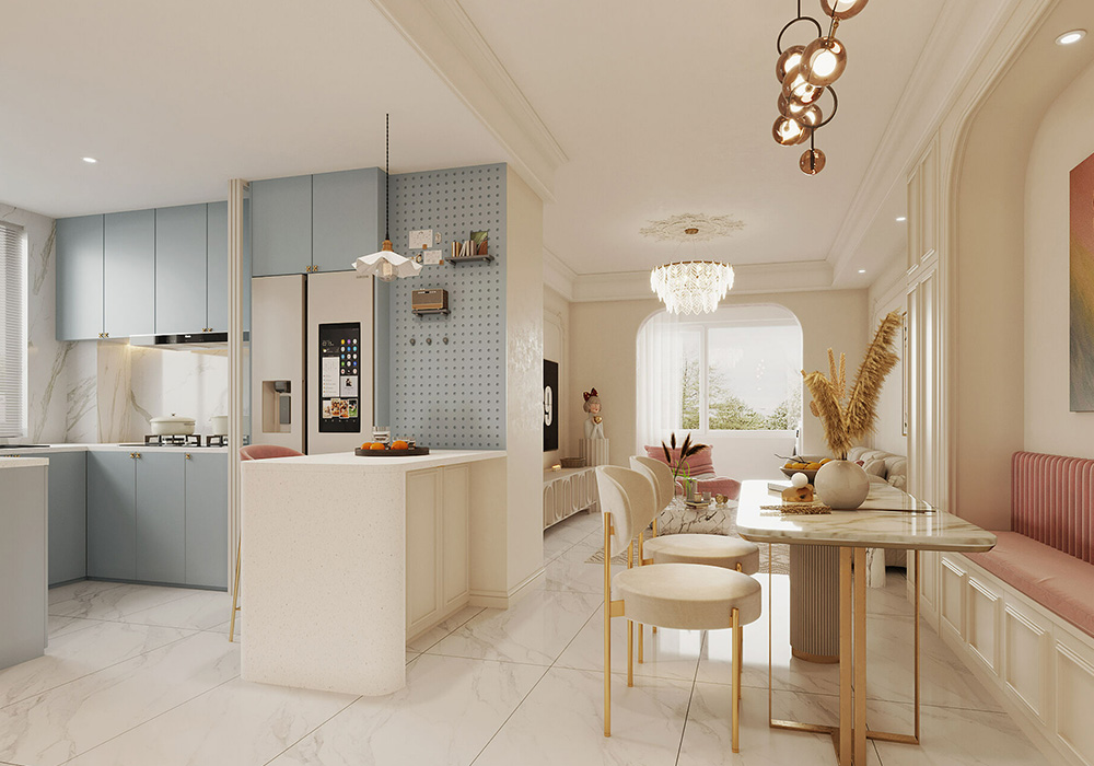 浪漫氛围法式风格以浪漫著称,追求精美、自由、慵懒和舒适的格调。 线条感强 墙面多用石膏线条装饰,花纹样式精美,偏爱角花。空间开阔整体给人感觉高挑大气,空间开阔性好。可选清新配色也可选浓烈配色,通常以白、金、深棕等木色作为主调。设计中追求心灵的自然回归感,开放式的空间结构、随处可见的花卉与绿色植物等。强调对称性,打造恢宏的空间气势。