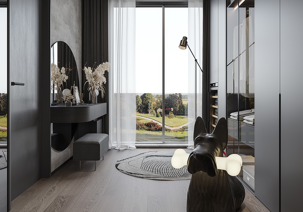 以夫妻二人的舒适生活为主,契和对于空间的深刻理解,使得环境独具特色的设计风格。想要表达以人为本的生活态度。 房屋有三房,动静分开,2楼整层是主任的居住空间,主卧以套房形式呈现~卧室、衣帽间、卫生间,家政区安放在一楼卫生间干区,晾晒区~拓展了2楼露台(方便洗晒)。