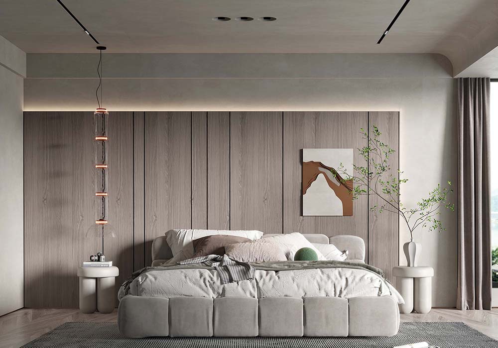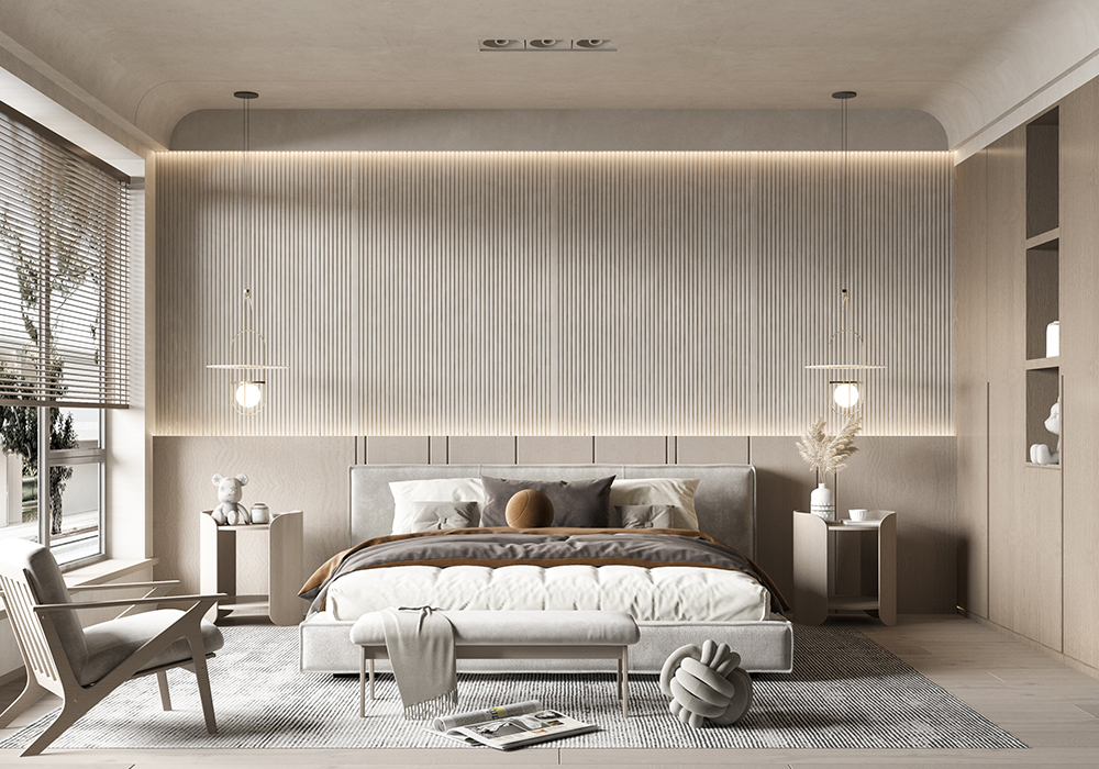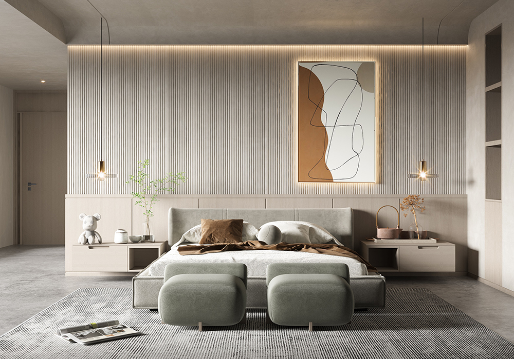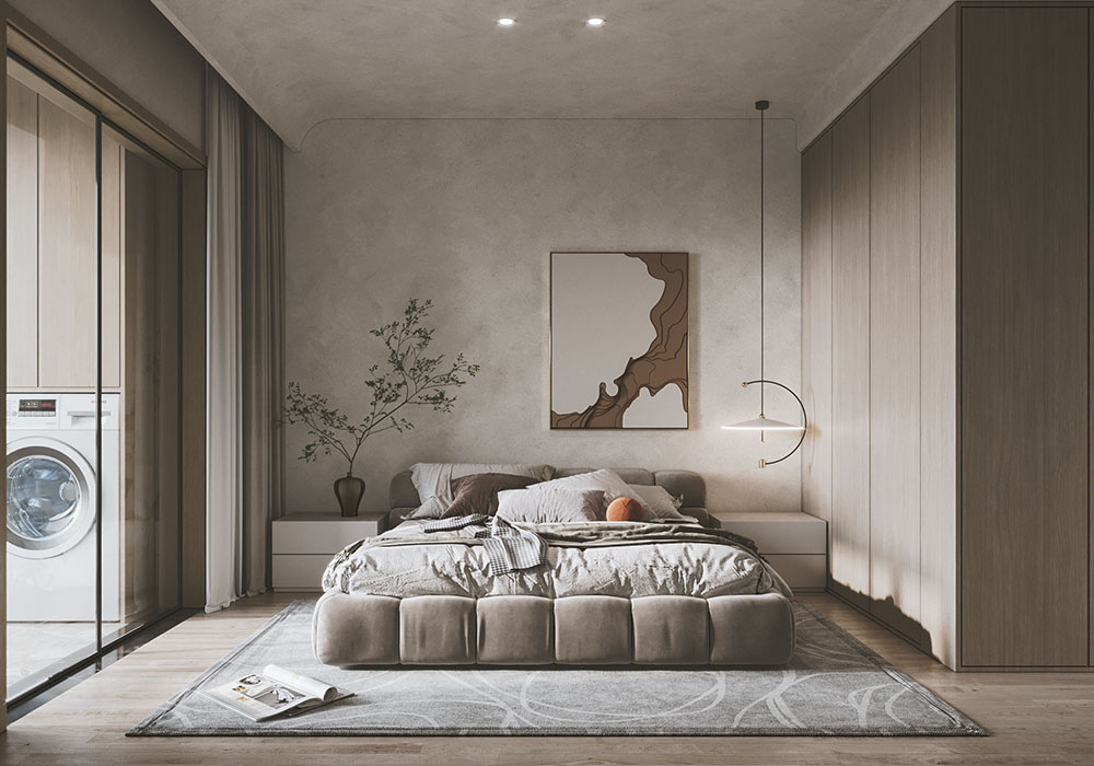 整体空间的硬装,简单干净直爽,软装却是温柔,质感细腻的高级感,软硬装相互协调,色调统一。