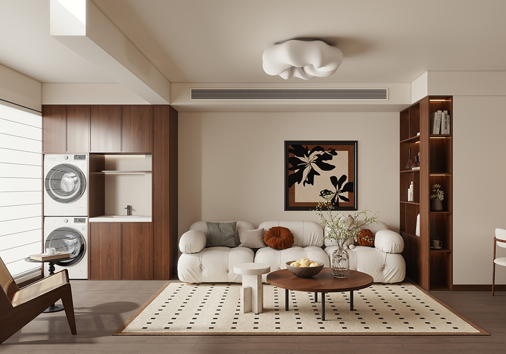以一家人的舒适生活为主,契和对于空间的深刻理解,使得环境独具特色的设计风格。想要表达以人为本的生活态度。 动静分开,2楼整层是主任的居住空间,主卧以套房形式呈现~卧室、衣帽间、卫生间,家政区安放在一楼卫生间干区,晾晒区~拓展了2楼露台(方便洗晒)。
