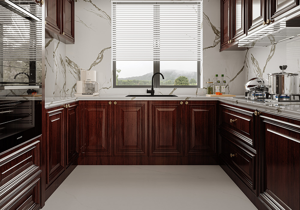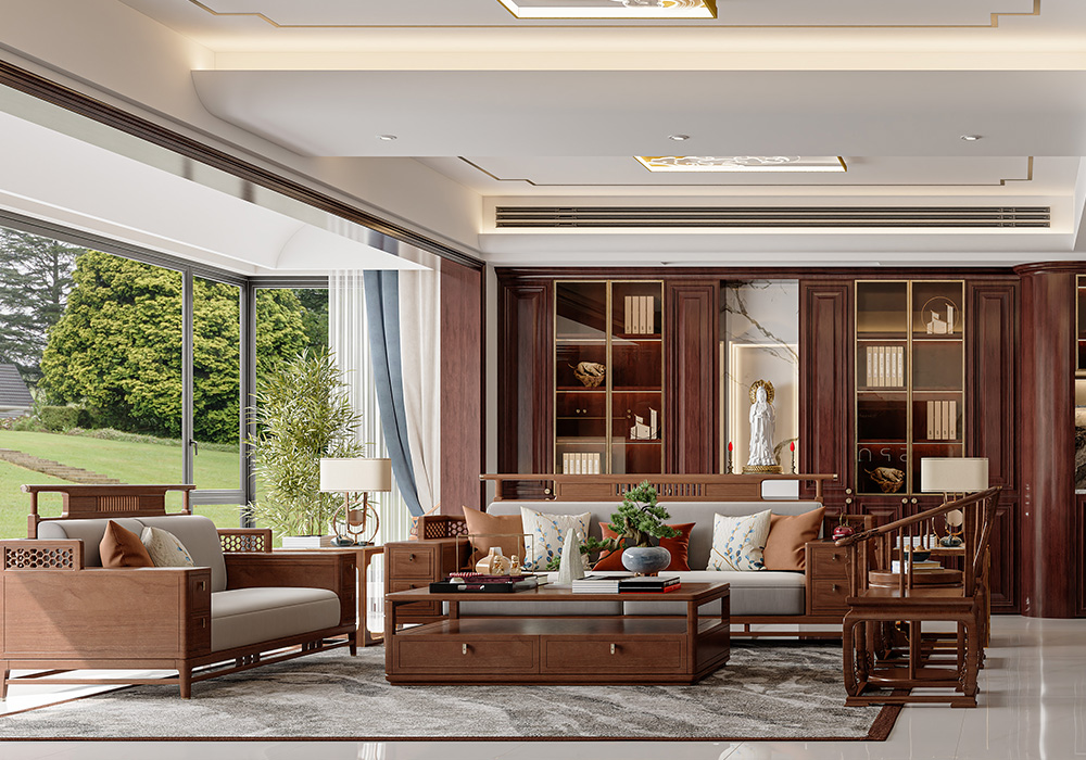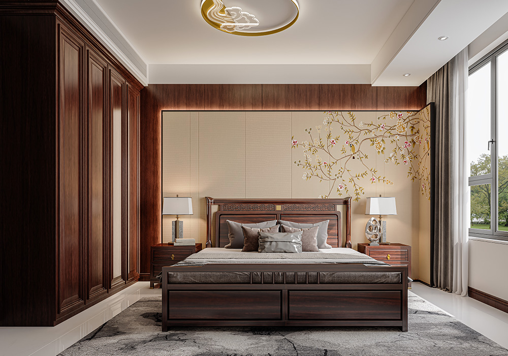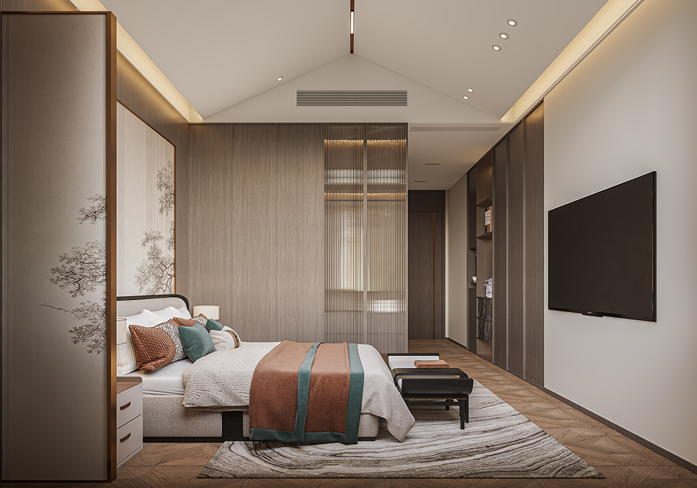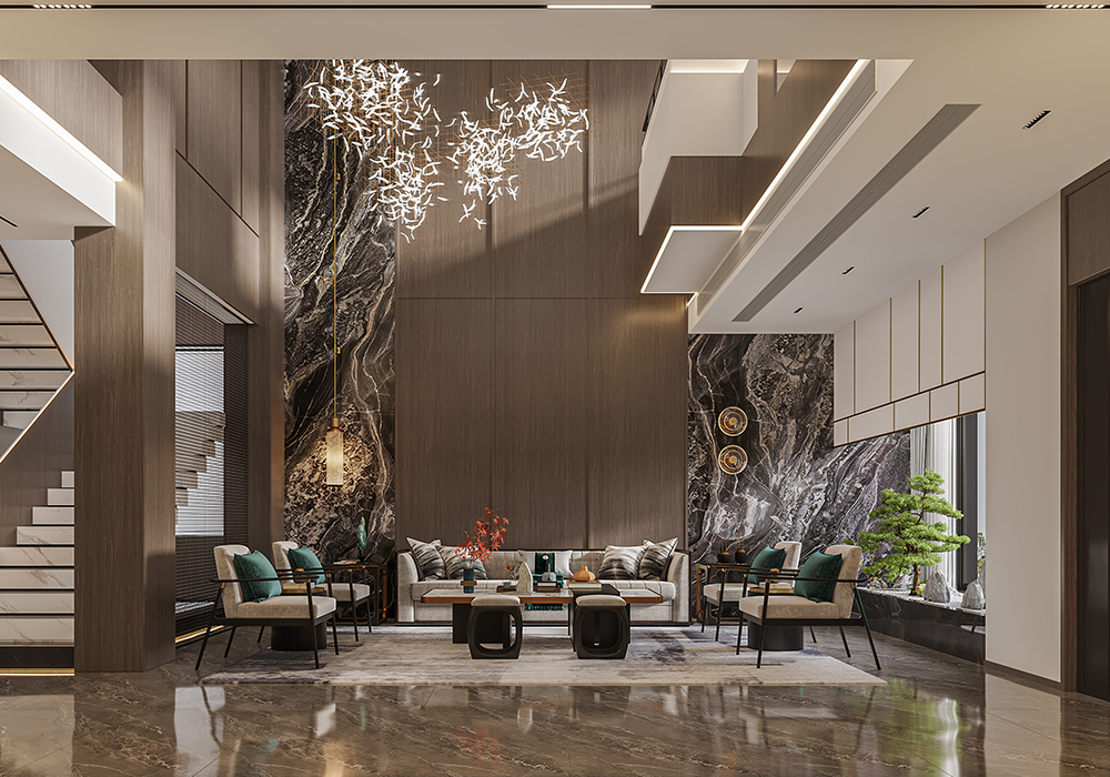 整体按宋氏美学风格设计,挑空的客厅加上大理石的背景墙,以及胡桃木的护墙板 ,让整个家,更温馨,餐厅的圆桌设计也象征这家庭的美满生活。