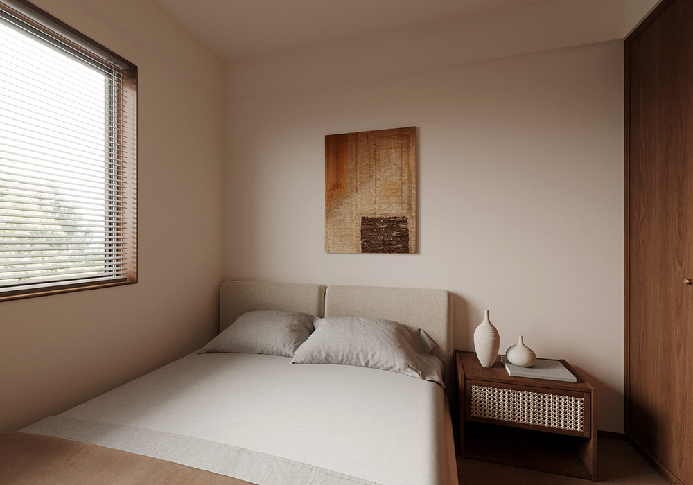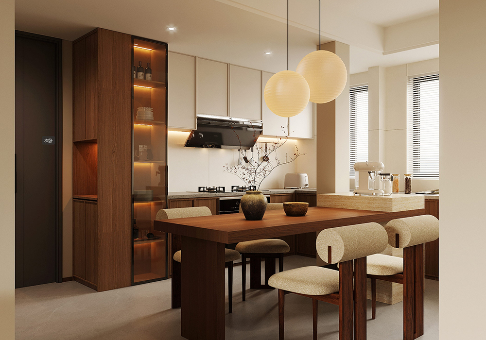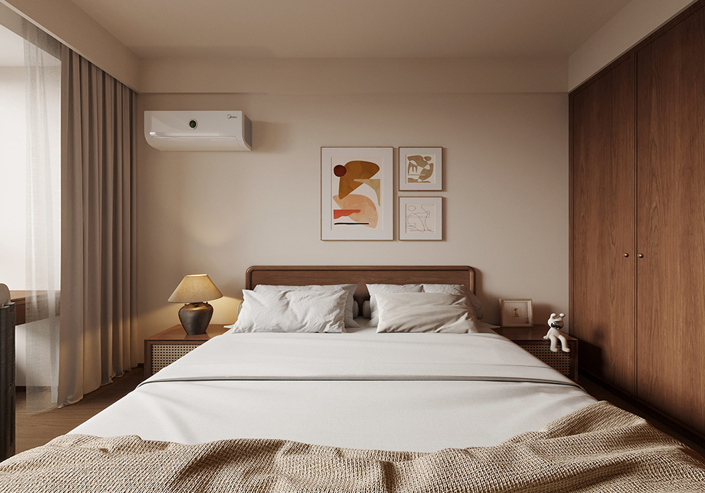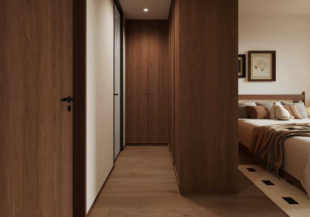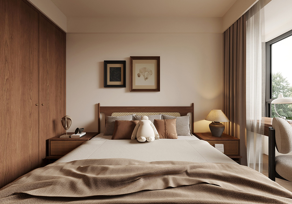 中古风放在现代家装中,其实更强调一种复古典雅、松弛惬意的格调,通过软装和灯光来烘托室内空间的氛围感和温馨感。根据不同业主的喜好,也逐渐和其他风格有了交叉,比如奶油中古风、法式中古风、原木中古风等。因要保留原本带的地暖,为不破坏地暖的排线,我们对于墙体没有做出太大的改变,保持原有户型。关于风格这个房间内就带了点法式线条 灯盘这些,包括地板 家具的颜色 包括灯光都需要一点点调配 这样空间才会协调。