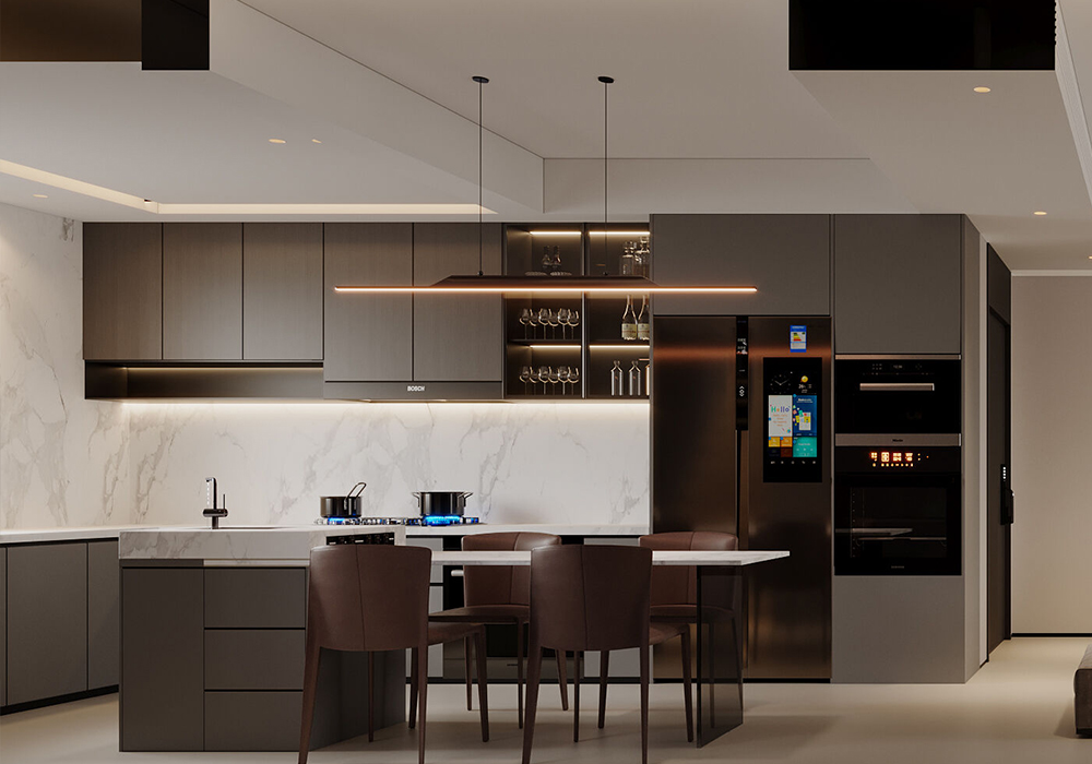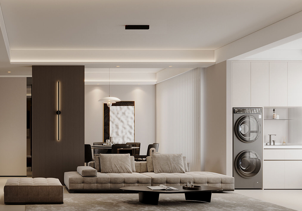 当今快节奏的生活中,越来越多的人开始向往简单、宁静的居住空间。因此我决定将新家的装修风格定为意式极简。意式极简风格以其独特的魅力,融合了意大利的传统与现代,追求简约到极致的同时,也带来了居住的品质感与舒适度。 电视背景墙采用悬浮电视墙,下嵌入灯带的设计,起到视觉冲击力,高级又美观。横厅的结构,使整个客厅更加开阔大气。 餐厨一体的空间设计使得整个横厅连接起来,更增强了整个空间的整体性。设计变更了原楼梯的位置,原本楼梯的空间上楼显得陡峭,之后将楼梯变更到了餐厅旁边,原楼梯的位置则做了一个800库,满足主人日常的储物需求。而灯光的设计,则是意式极简风格中的点睛之笔。它不仅仅是为了照明,更是为了营造氛围让居住者能在不同的光影交错中,感受到家的温馨与舒适。大到沙发茶几、小到壁灯、台灯、每个单品都是精心挑选,成为空间的点睛之笔,让空间瞬间灵动有趣起来。用现代设计语言诠释家的品味与舒适。美观与实用并存,简约线条诉说空间的故事,每一外细节都充满生命力。