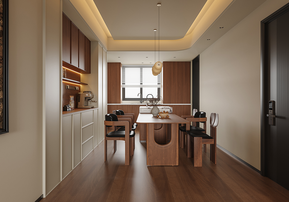 房屋有四房,有一套房~卧室+书房+衣帽间+卫生间;原有厨房做西厨于餐厅形成一体;南阳台做茶室与客厅融为一体;