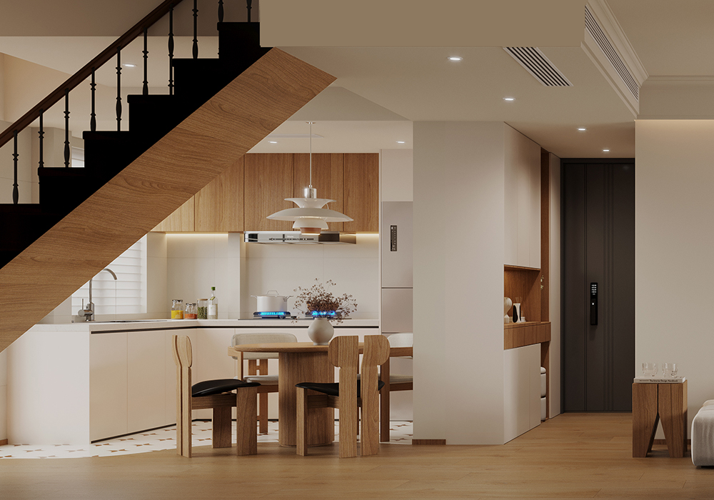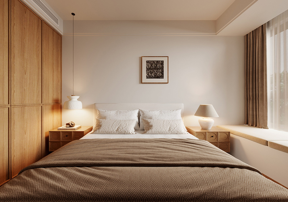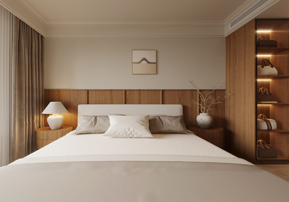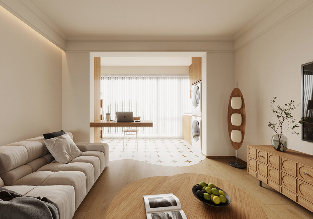 关于风格这个房间内就带了点法式线条 灯盘这些,包括地板 家具的颜色 包括灯光都需要一点点调配 这样空间才会协调。
