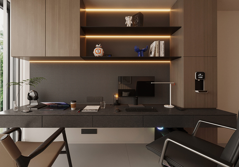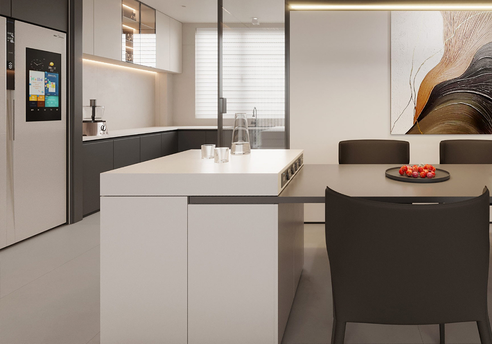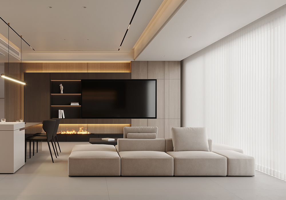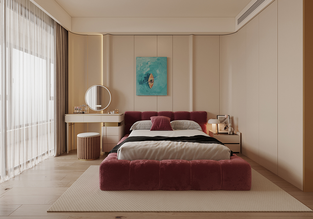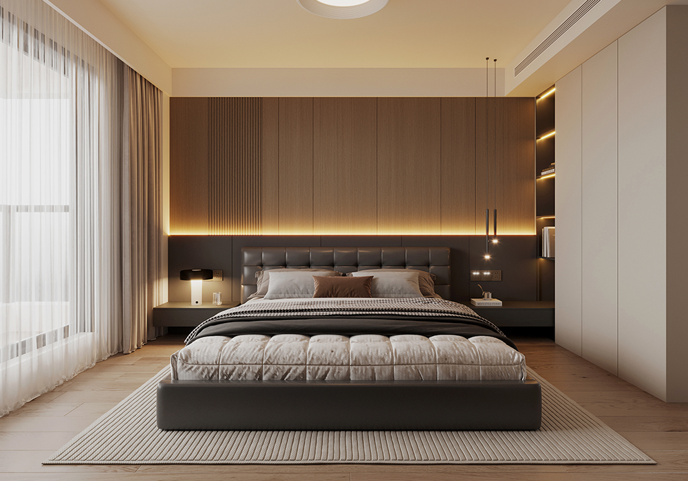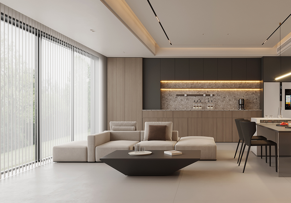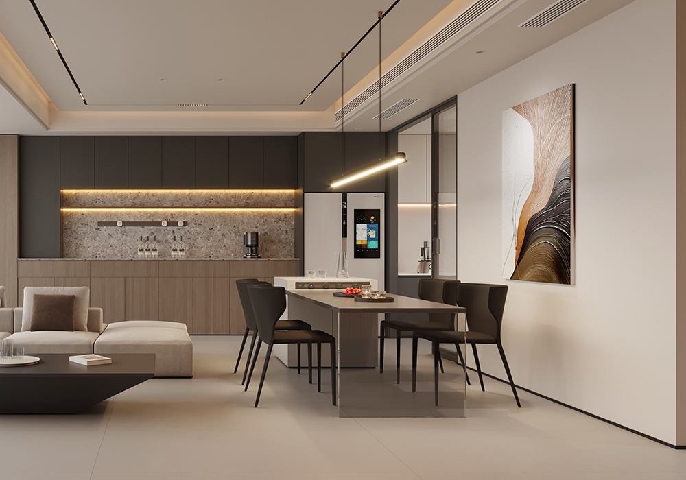 以白色、灰色、黑色等中性色为基底,塑造沉稳内敛的氛围。深蓝、深红等色调被局部应用于家具或装饰品,既提升空间层次感,又赋予低调奢华属性。