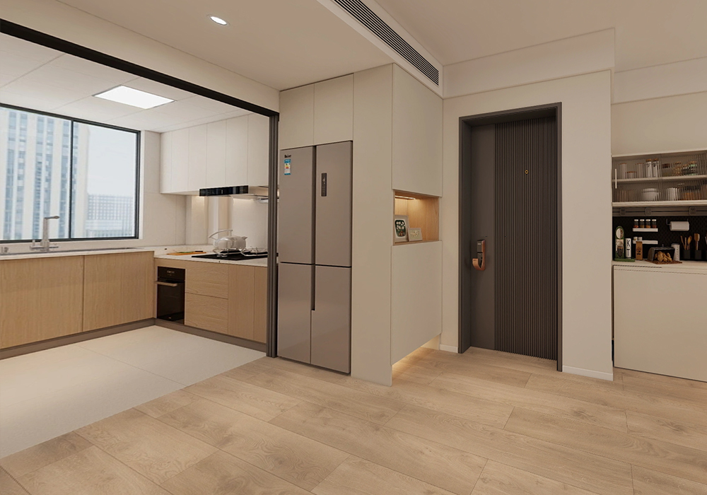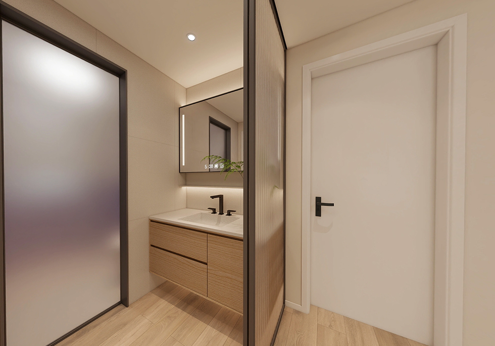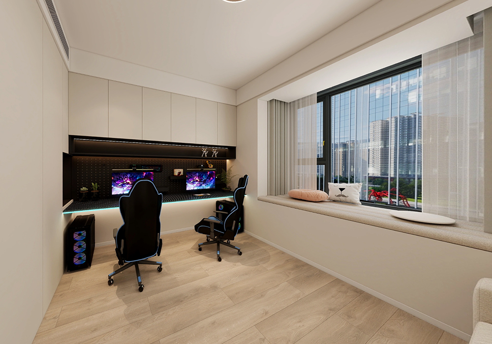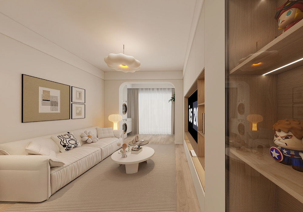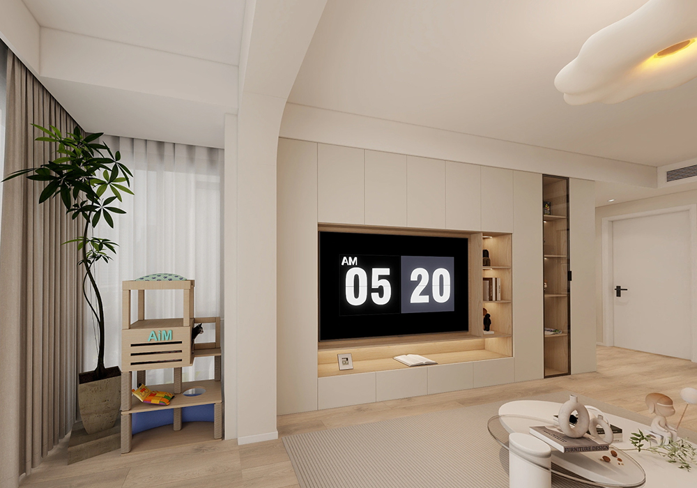 大理石电视墙以其自然纹路作为装饰,整体简洁大方,有种返璞归真的天然韵味。床头灯的金属光泽和绿植相互,自然而惊艳,仿佛生活处处充满了小惊喜。次卧合理利用空间,采用必要装饰画和壁柜,一切显得那么有序、自然。