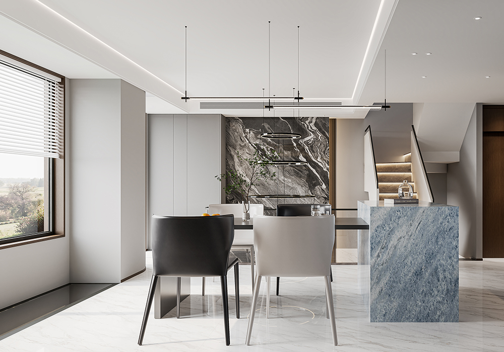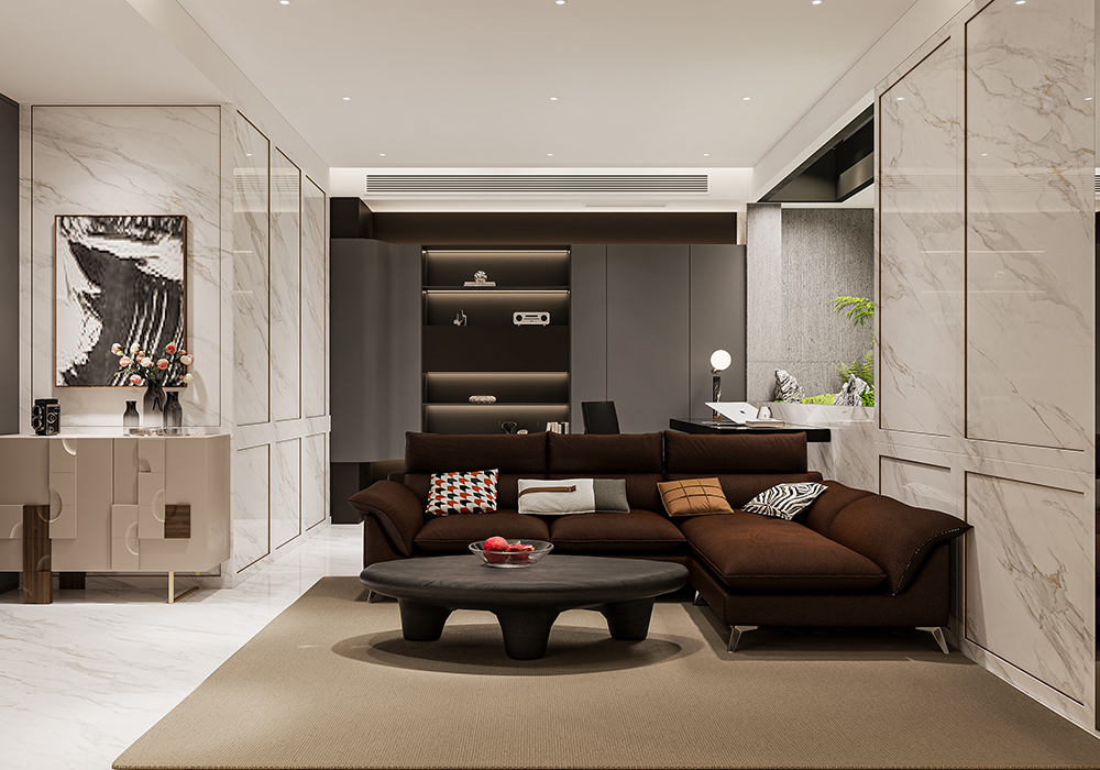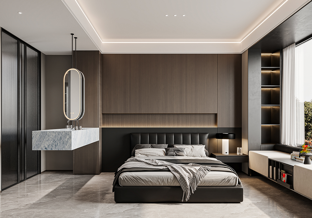 无主灯设计搭配线性灯、氛围灯带,用光影塑造层次,既保证功能性,又让空间更显通透。