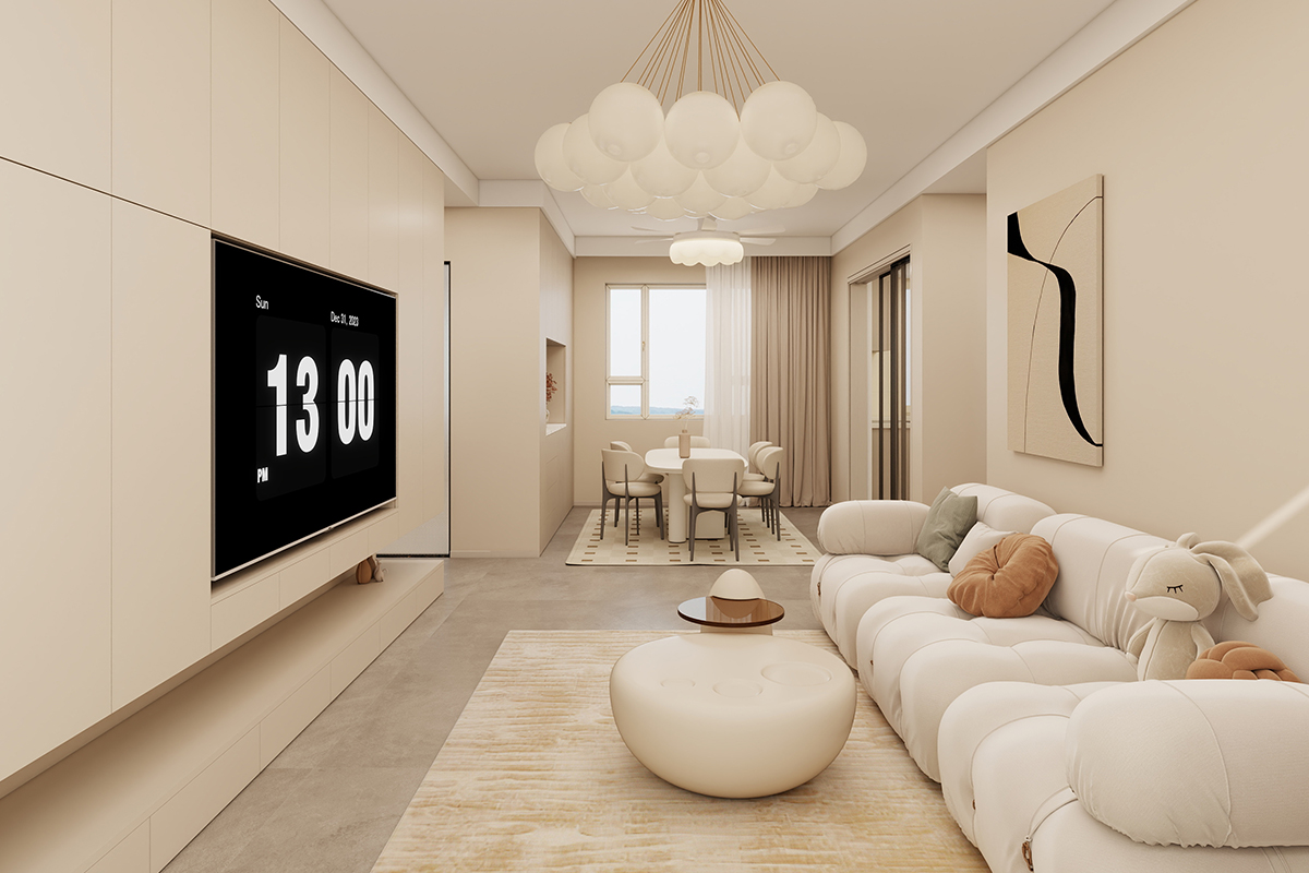 100平米3室2厅奶油